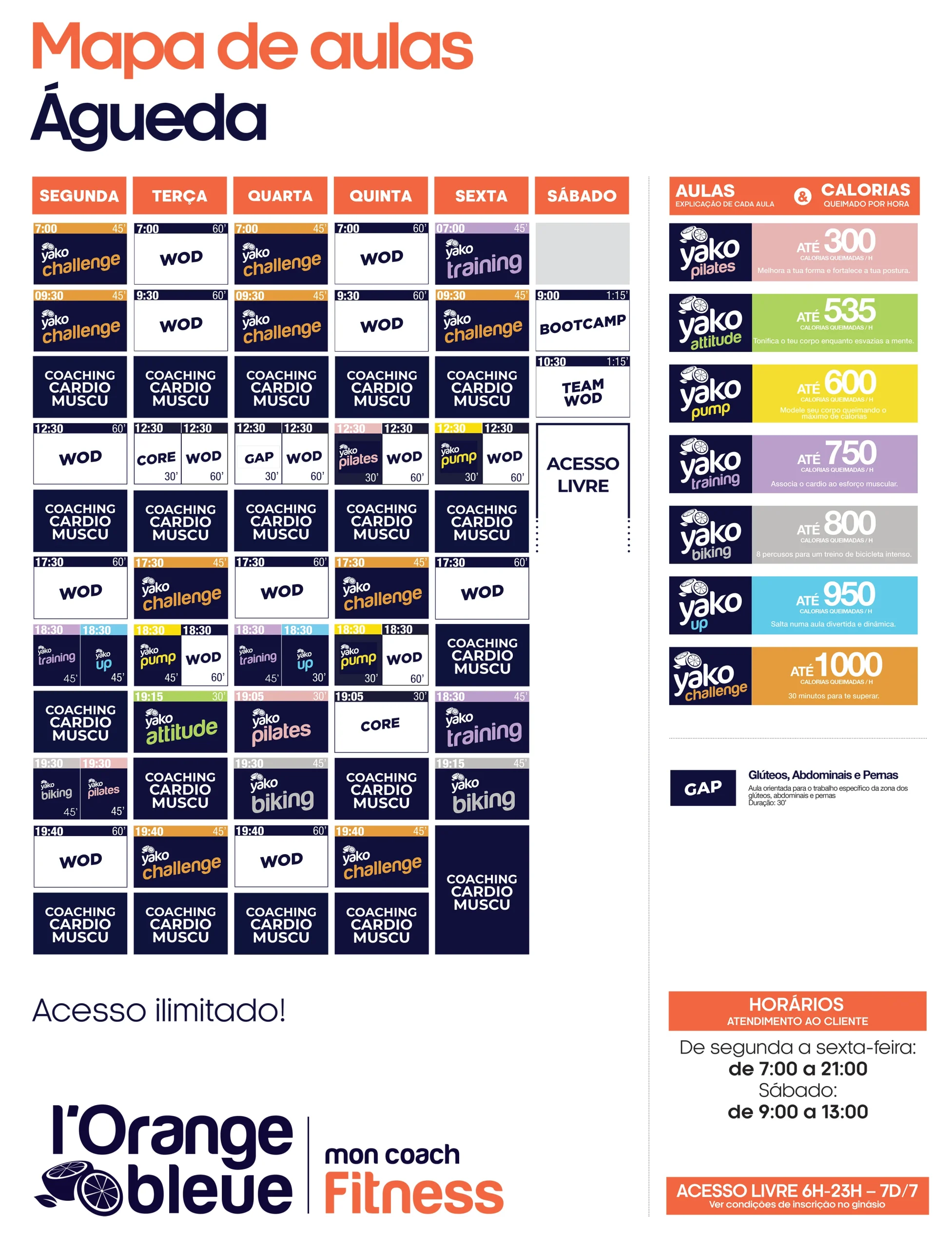 Na l’Orange bleue Águeda, as aulas YAKO oferecem treinos variados, intensos e motivadores, concebidos para todos os níveis e objetivos. Realizadas em grupo, com energia contagiante e acompanhamento profissional, são a fórmula perfeita para evoluíres com prazer e consistência.